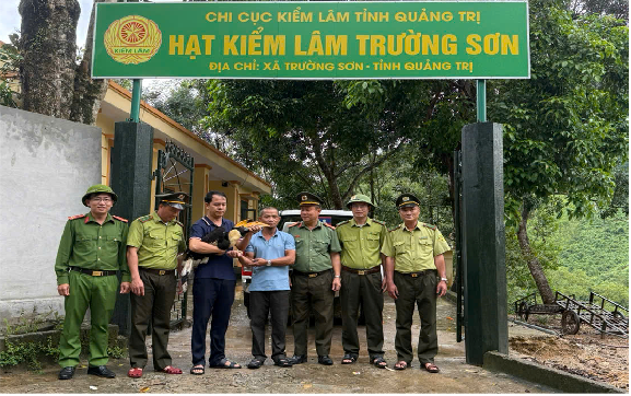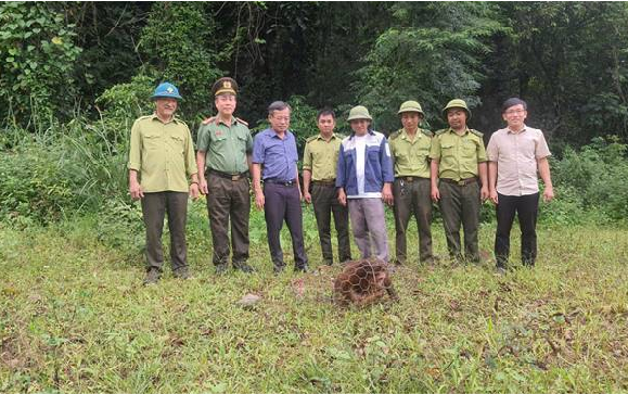 Tiếp đó, ngày 16/10/2025, Công an xã Trường Sơn tiếp nhận thông tin từ người dân ở bản Khe Ngang về việc có một con khỉ khoảng 15 kg vào vườn nhà đuổi bắt đàn gia cầm. Con vật được người dân bắt giữ an toàn và bàn giao cho lực lượng chức năng. Qua kiểm tra, Hạt Kiểm lâm Trường Sơn xác định đây là khỉ mặt đỏ (Macaca arctoides)- loài nguy cấp, quý hiếm thuộc nhóm IIB trong Danh mục loài nguy cấp, quý, hiếm ban hành kèm theo Thông tư số 27/2025/TT-BNNMT. Sau khi hoàn thiện hồ sơ, Hạt Kiểm lâm phối hợp UBND xã Trường Sơn và Ban Quản lý rừng phòng hộ Quảng Ninh đã tổ chức thả cá thể khỉ về lại môi trường sống tự nhiên.