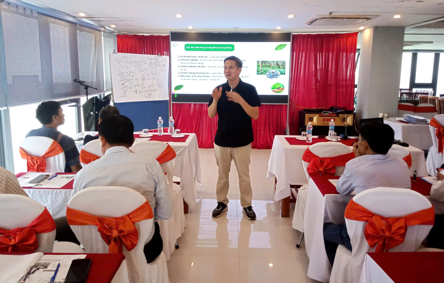 Tại lớp tập huấn, các học viên được phổ biến các nội dung tổng quan về chuỗi giá trị sản phẩm gỗ rừng trồng; kỹ năng tổ chức sản xuất gỗ rừng trồng bền vững; phát triển chuỗi giá trị cho sản phẩm gỗ rừng trồng và phương pháp xây dựng phương án sản xuất và quản lý rủi ro trong chuỗi giá trị. Lớp học cũng dành thời gian thảo luận, chia sẻ kinh nghiệm thực tiễn trong phát triển chuỗi liên kết giữa người trồng rừng, hợp tác xã và doanh nghiệp chế biến, tiêu thụ sản phẩm gỗ rừng trồng.